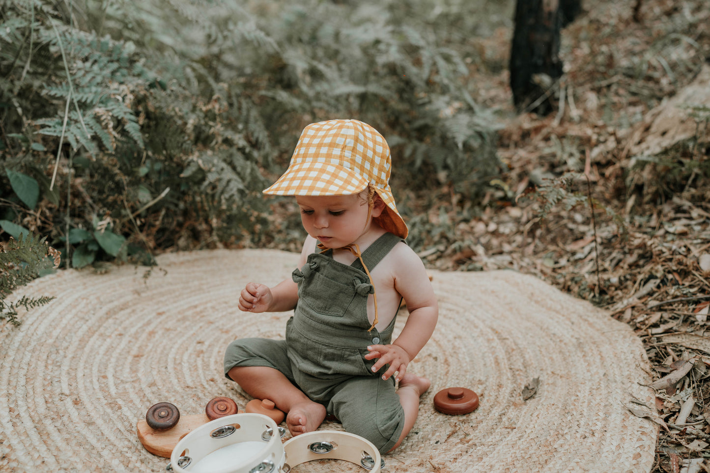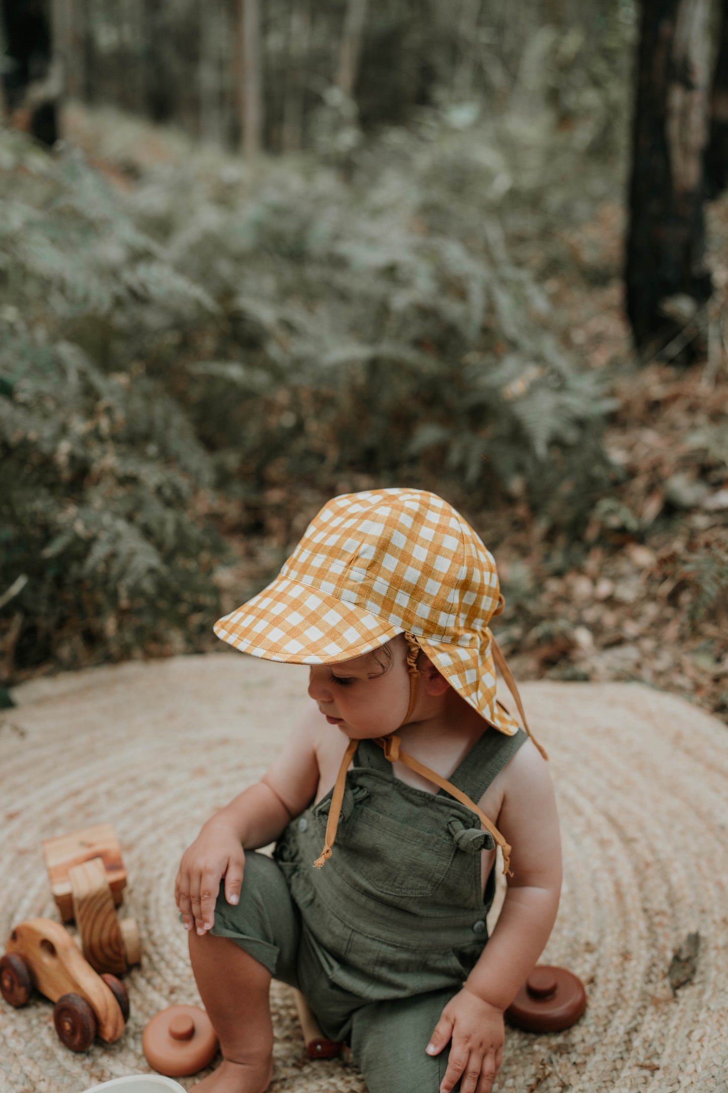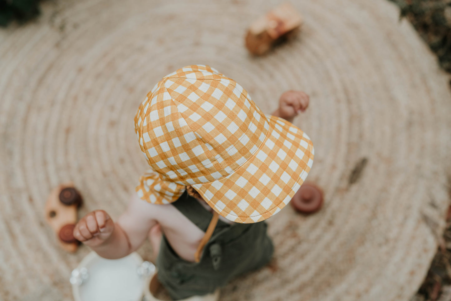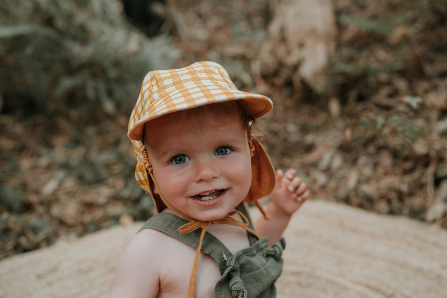 Laidback and sun-drenched, Marley is made for golden hour. This rich gingham design blends buttery maize tones with a soft flax background for a beautifully neutral hat that works with everything. Reversible to a warm maize solid, it’s a staple for baby’s first sunny season.