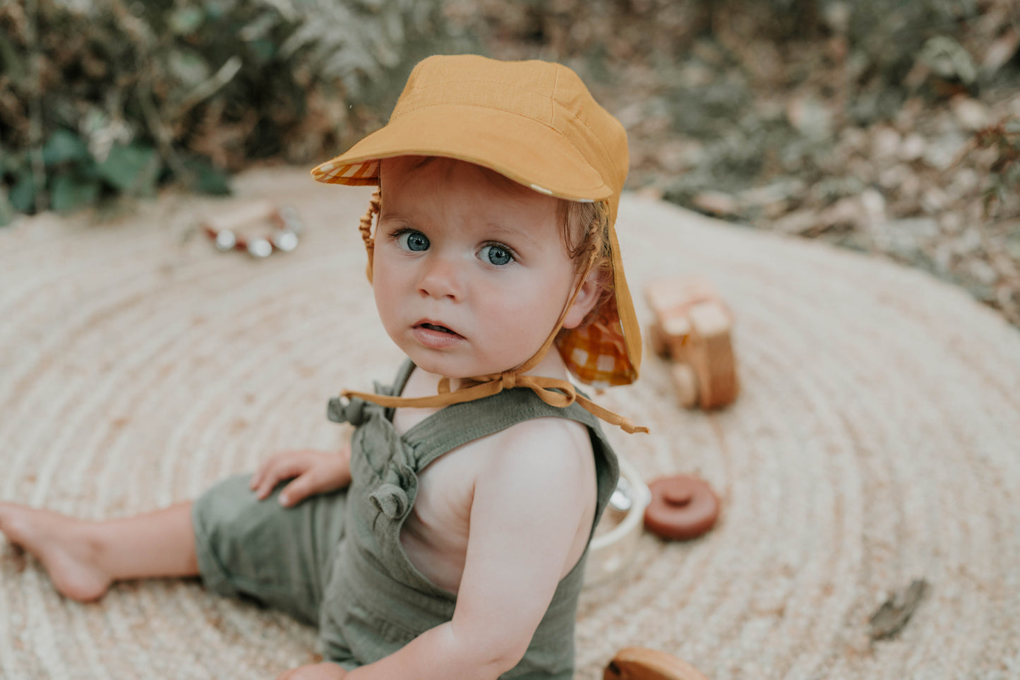 Lightweight, breathable and crafted from 100% eco-linen, the Lounger flap hat features a soft neck flap and upright brim for comfy sun coverage in prams or carriers. Crown adjuster and elasticated chin straps keep it snug on even the wriggliest of wearers.