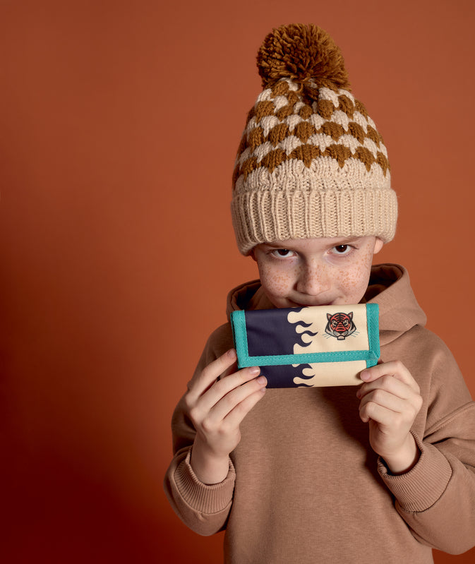 A stylish velcro wallet with a beautiful tiger illustration, perfect for saving up pennies. The design features;