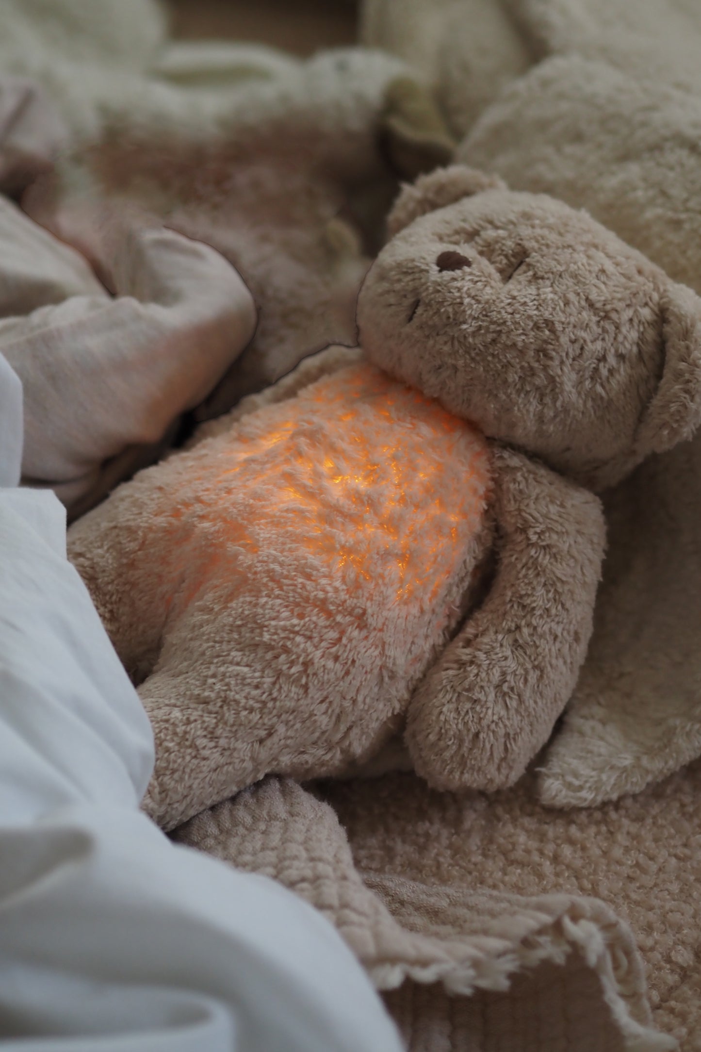 The humming bunny and the humming bear MOONIE are also great for older children who often experience night terrors and fear the dark. In these situations, you can turn on just the lamp without making any noise and leave it on all night to provide your child with a sense of comfort.