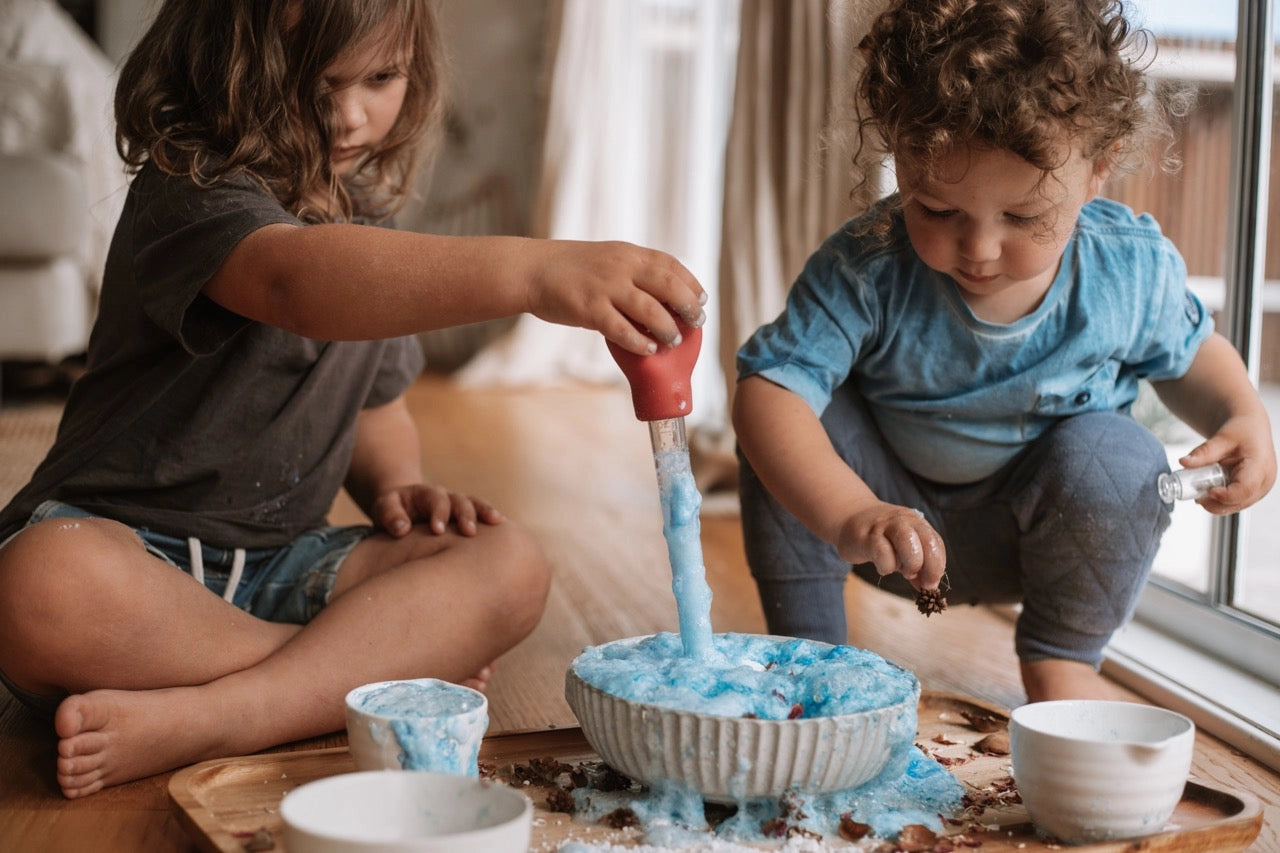 Use The Saltwater Collective fizz in your mud kitchen, add leaves, twigs and flowers or whatever you can forage from your garden and make your own potion magic, bottle it up to keep your potions magic active.