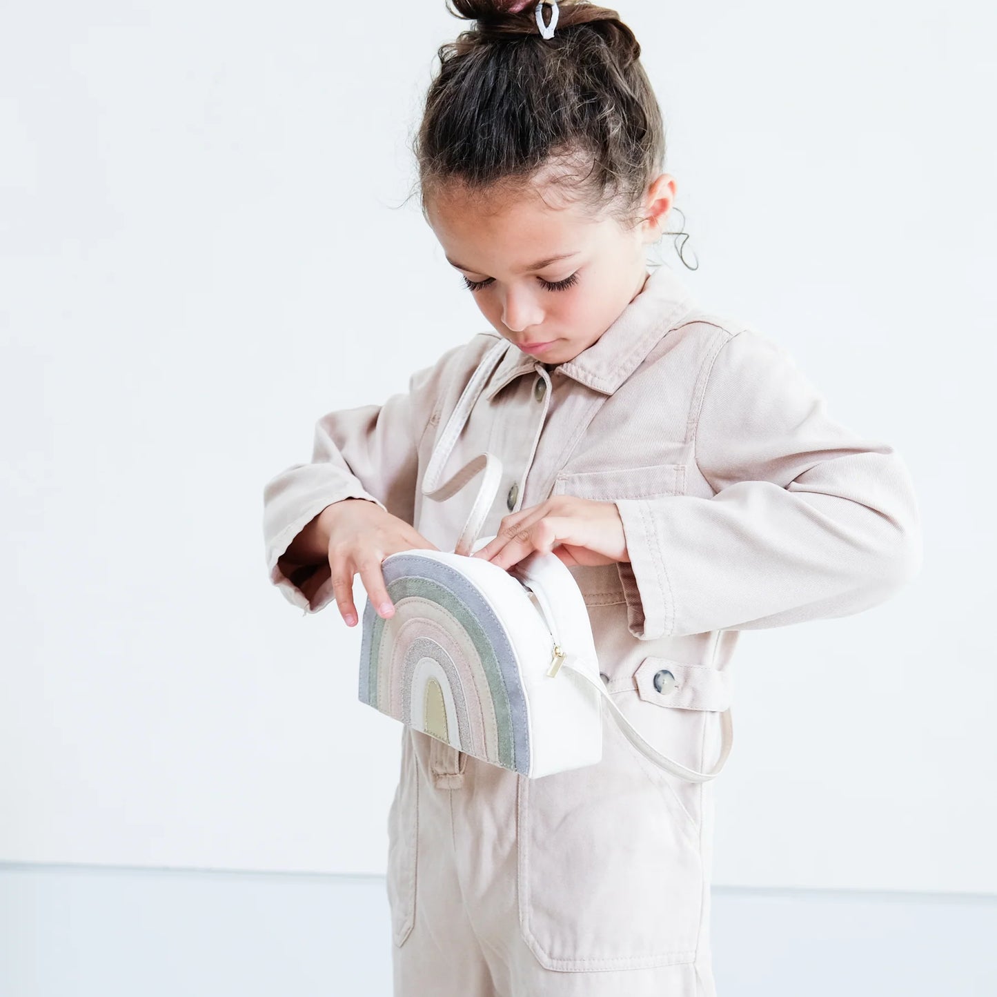Make their dreams come true with our new rainbow bag! Crafted from the softest suedette fabrics in a beautifully muted pastel palette, this rainbow bag can hold all the treasures a girl could need!