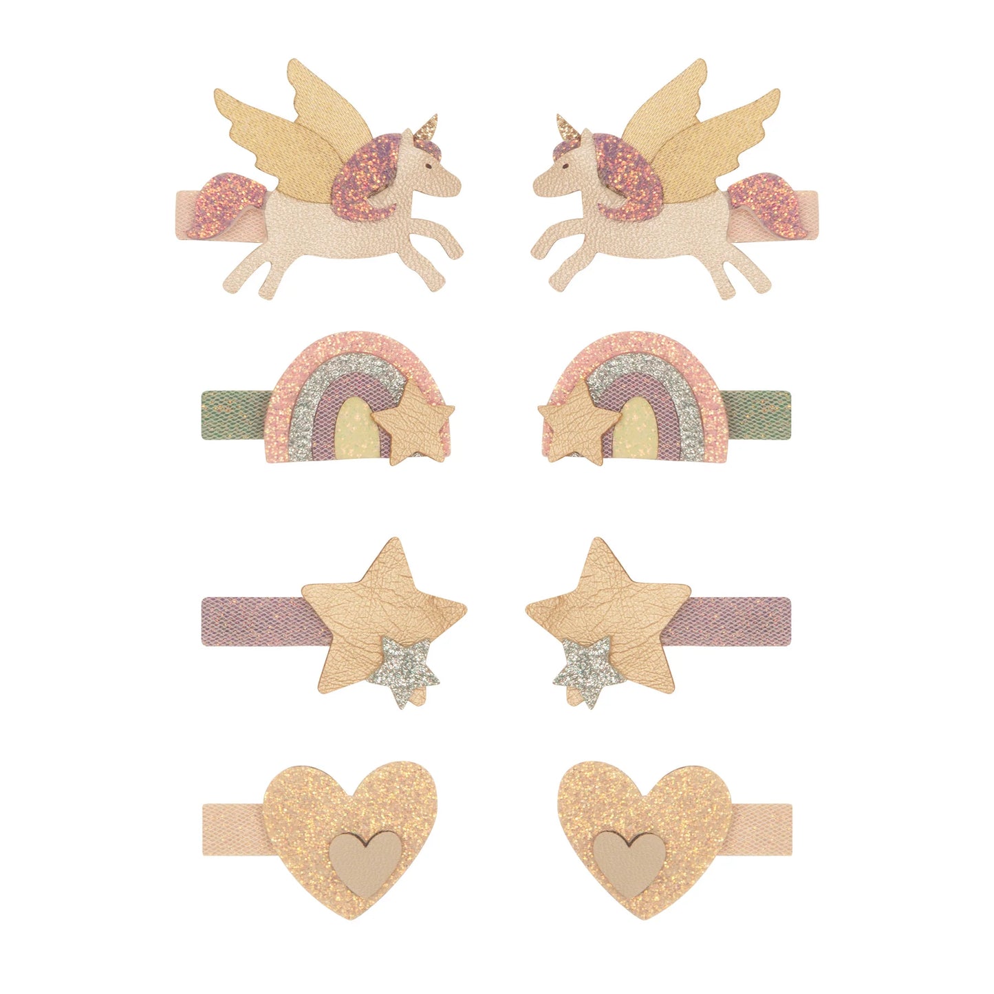 Let their mythical dreams take flight with this super magical mini clip set featuring sparkling unicorns, twinkling rainbows, shimmering stars and golden hearts!