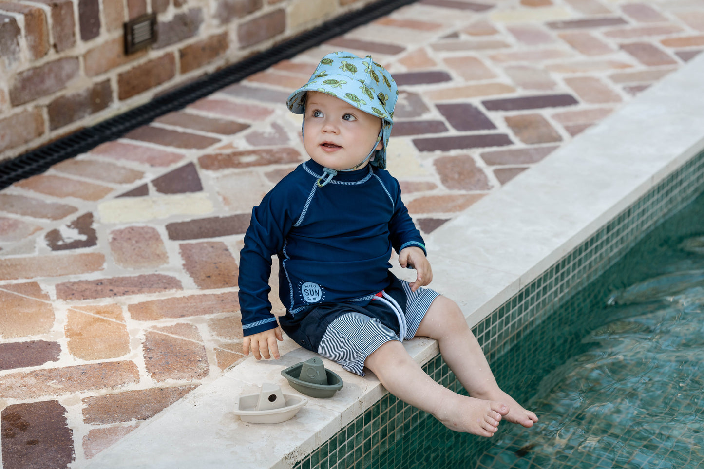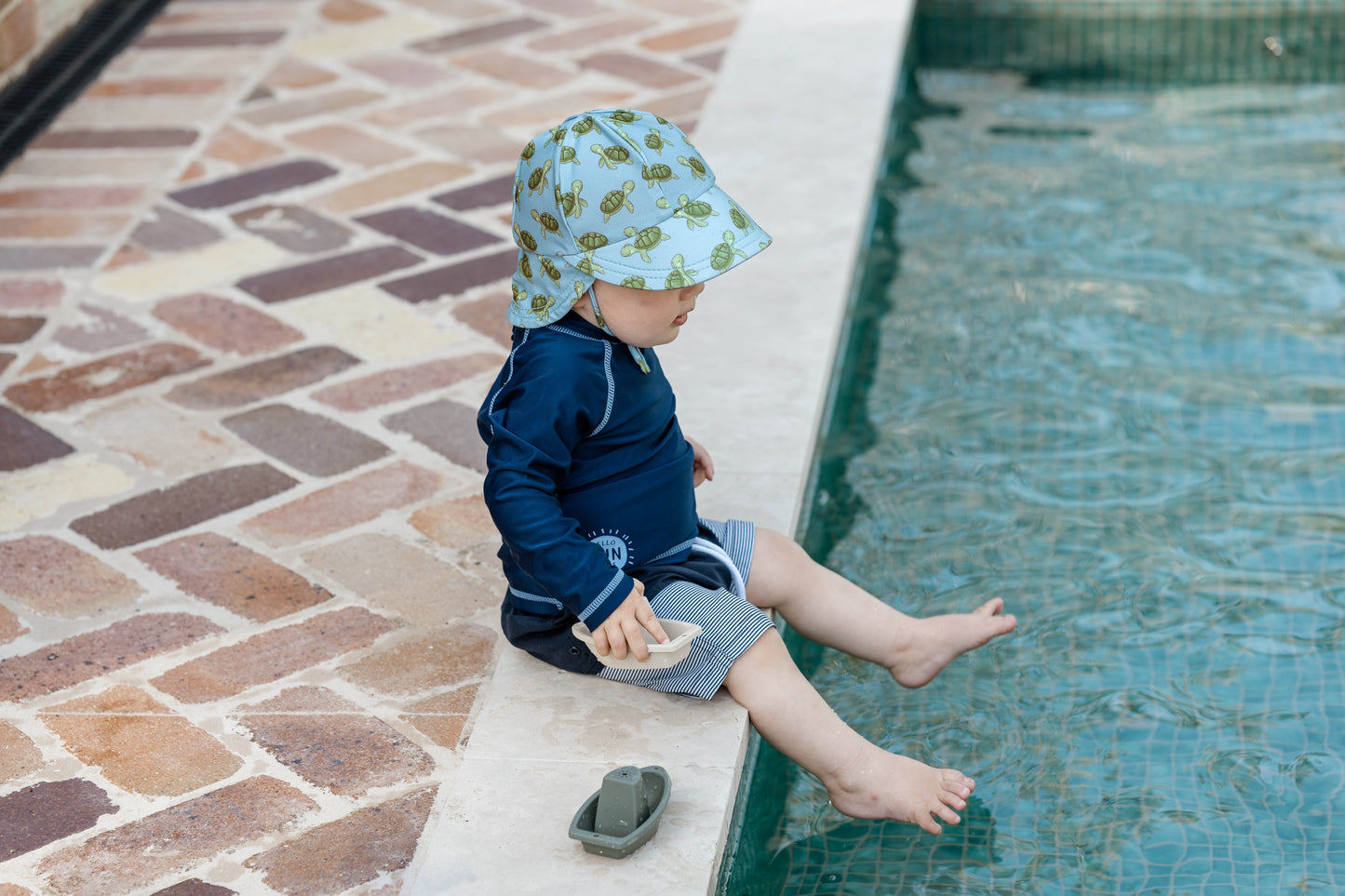 Designed with comfort and sun protection in mind, the Swim Legionnaire Hat offers full coverage over delicate areas like the ears and neck, plus a snug fit that stays in place. Made from quick-drying, chlorine-resistant UPF50+ fabric—it’s a beach bag essential for water-loving bubs.
