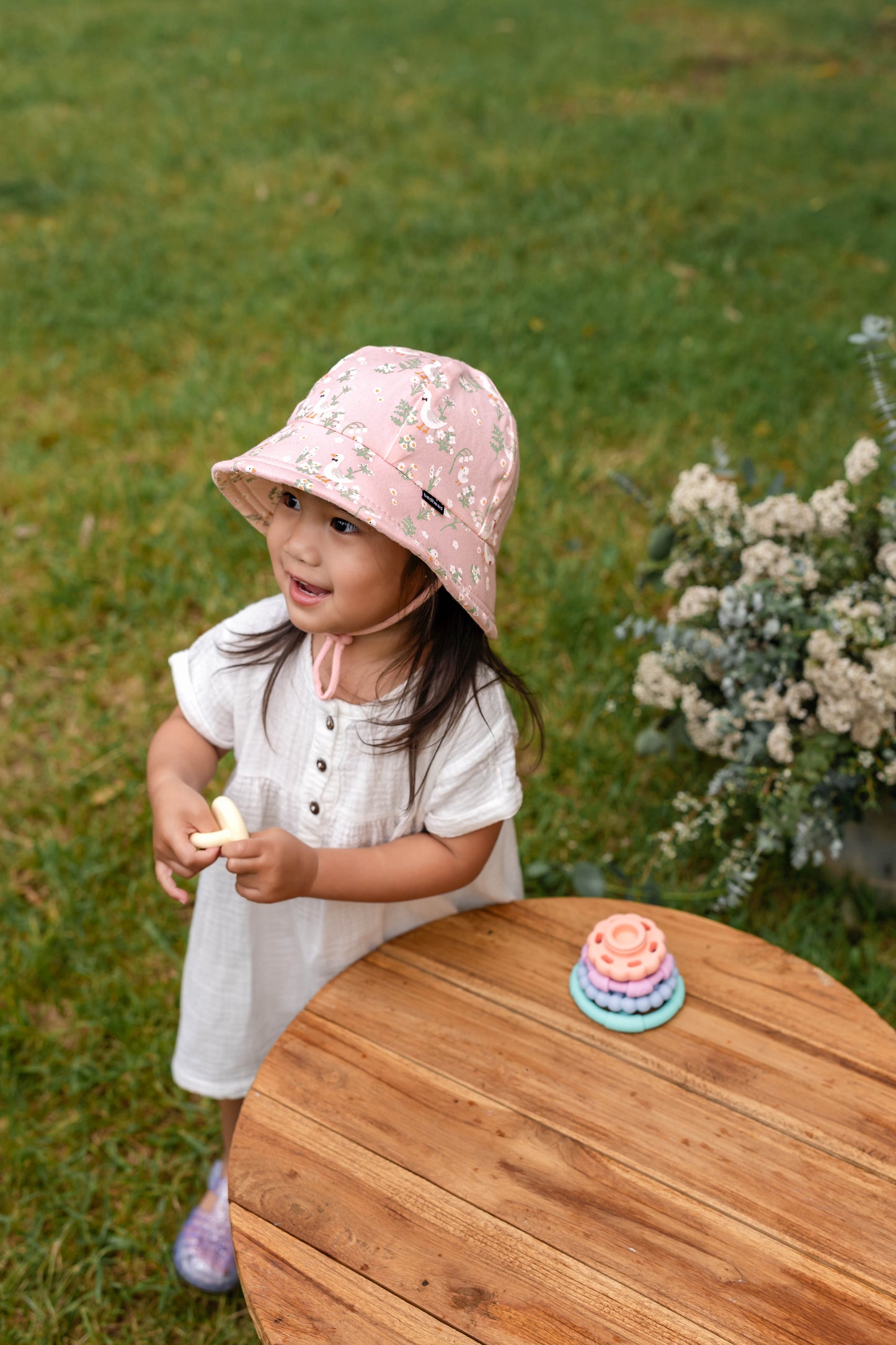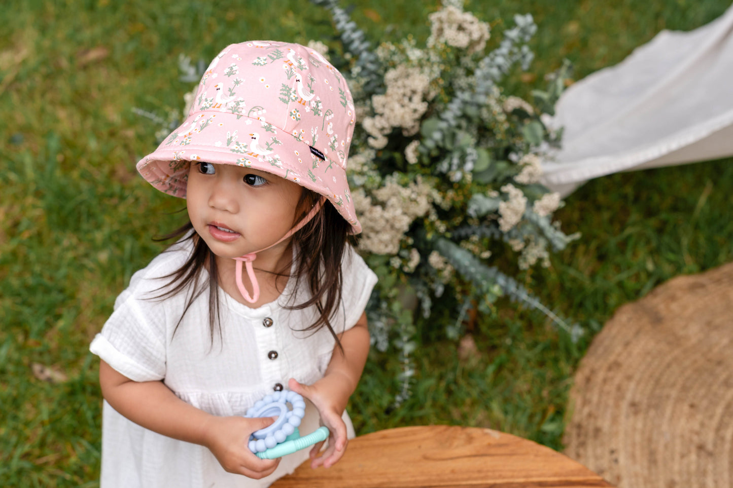 Let them waddle in style—QUACKERS is the ultimate sun-safe hat for busy little ducklings!