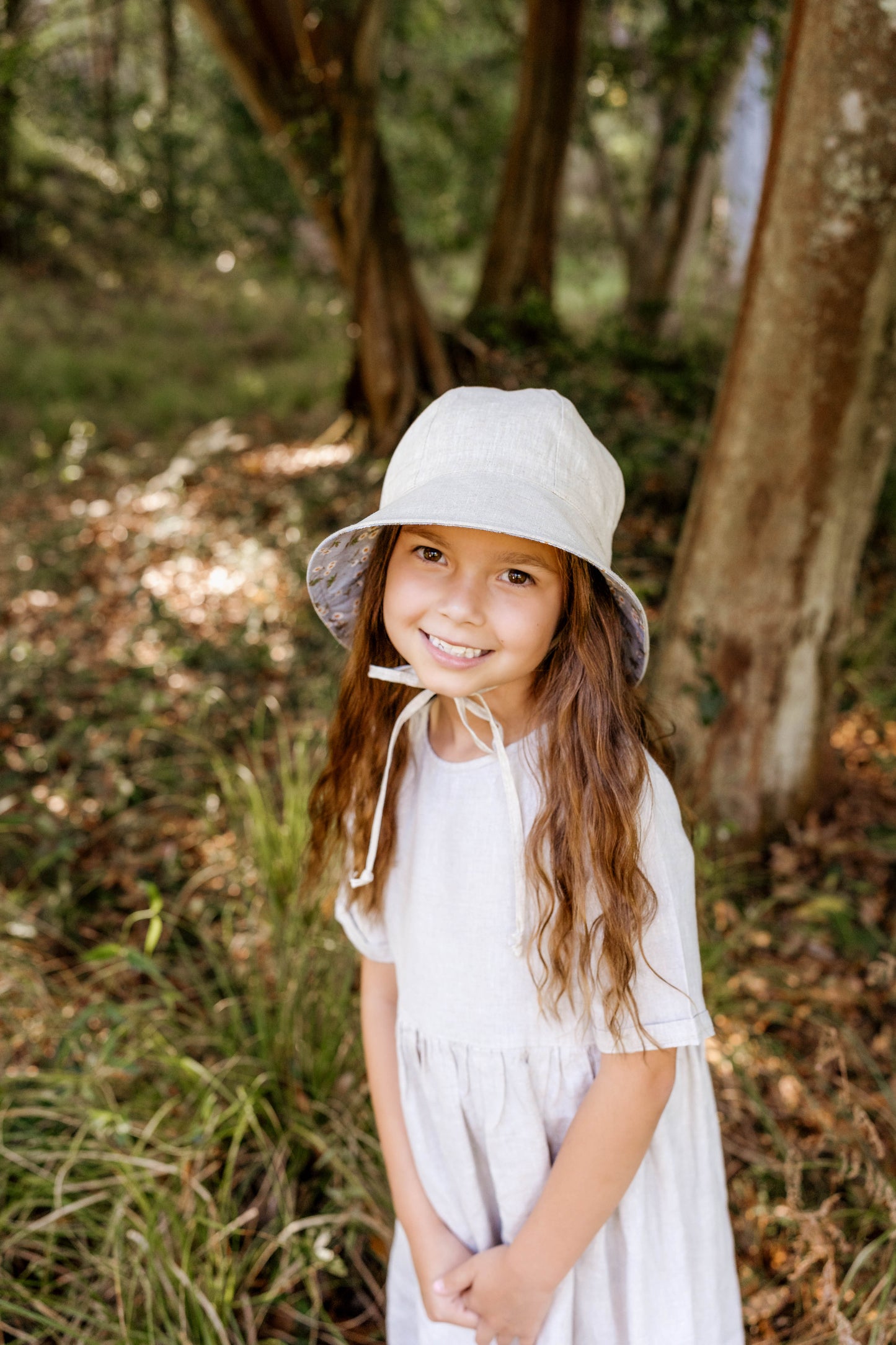 Shapely and stylish with a deep panelled crown, the bucket hats are light and cool on heads, making them hats kids don't even realise they're wearing! Made from 100% eco-friendly linen which can self-cool in summer and warm in winter, the Wanderer hat provides UPF50+ sun protection without overheating heads. The wide brims shield eyes and faces all year round, while the woven interfacing and thin cord edge in the brim gives a little more flexibility and shape without flopping in eyes.