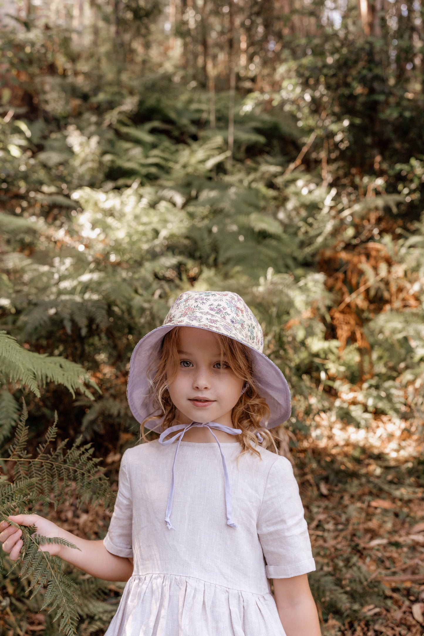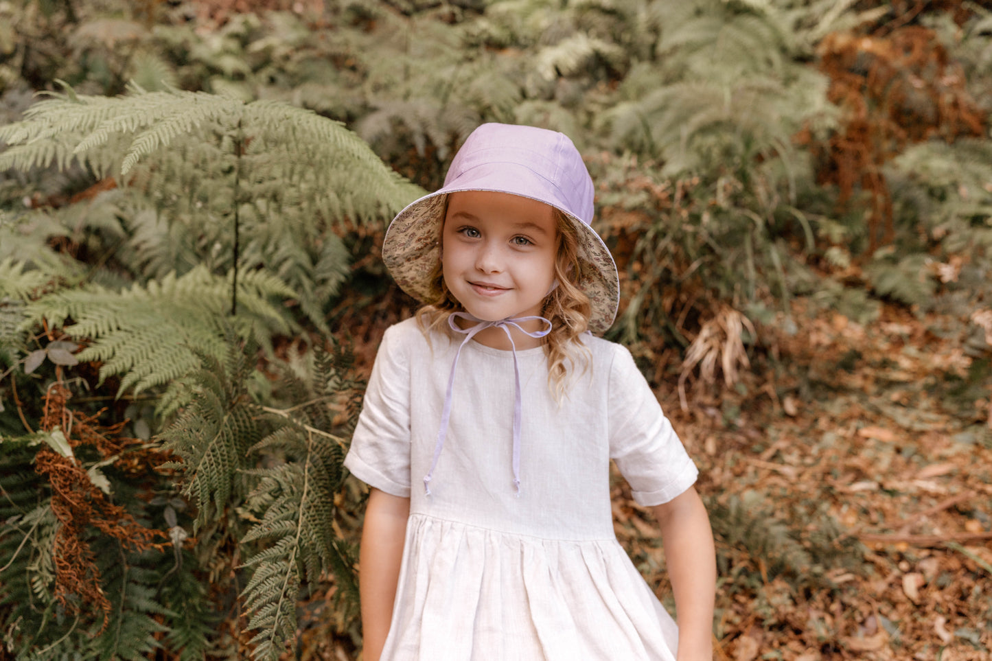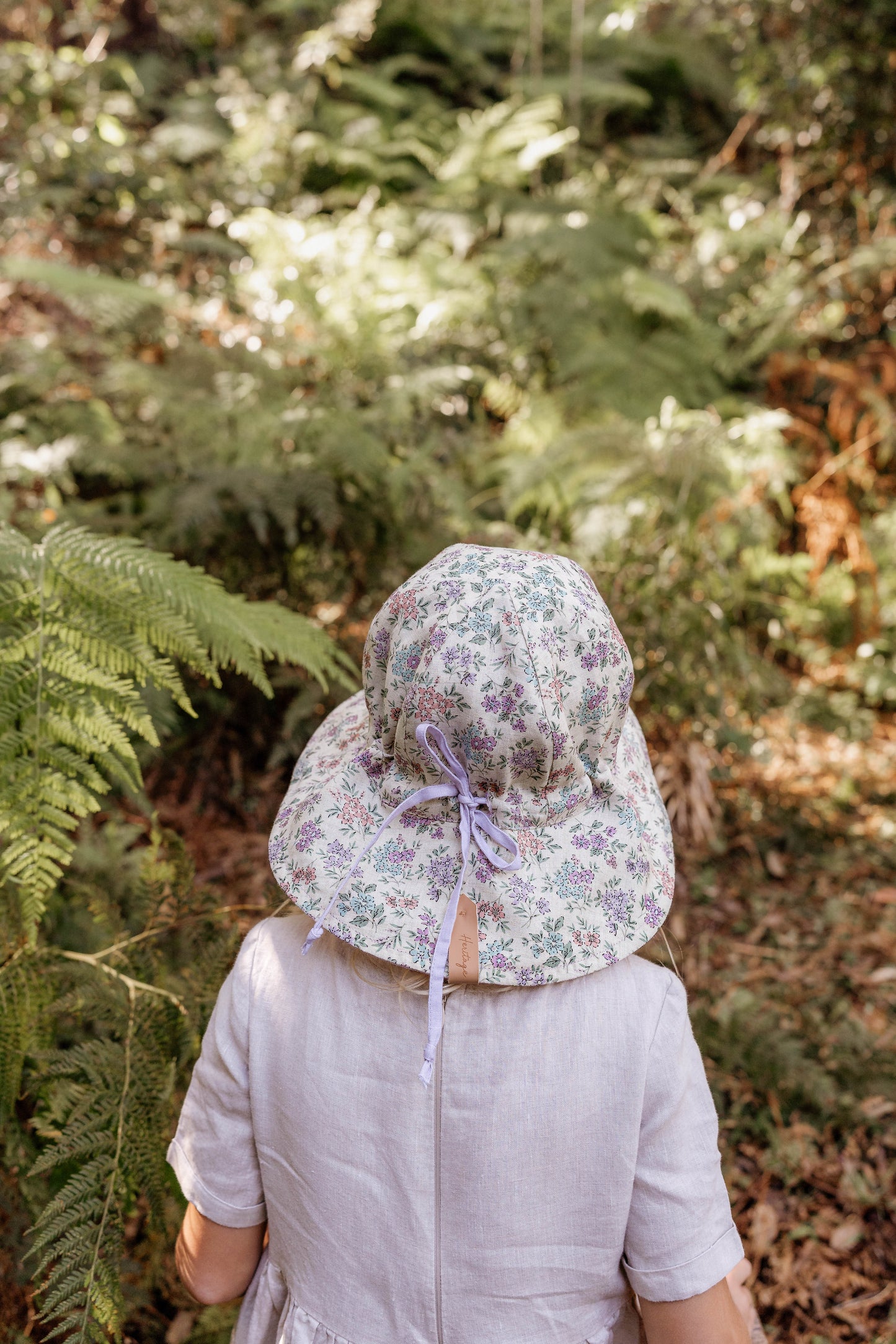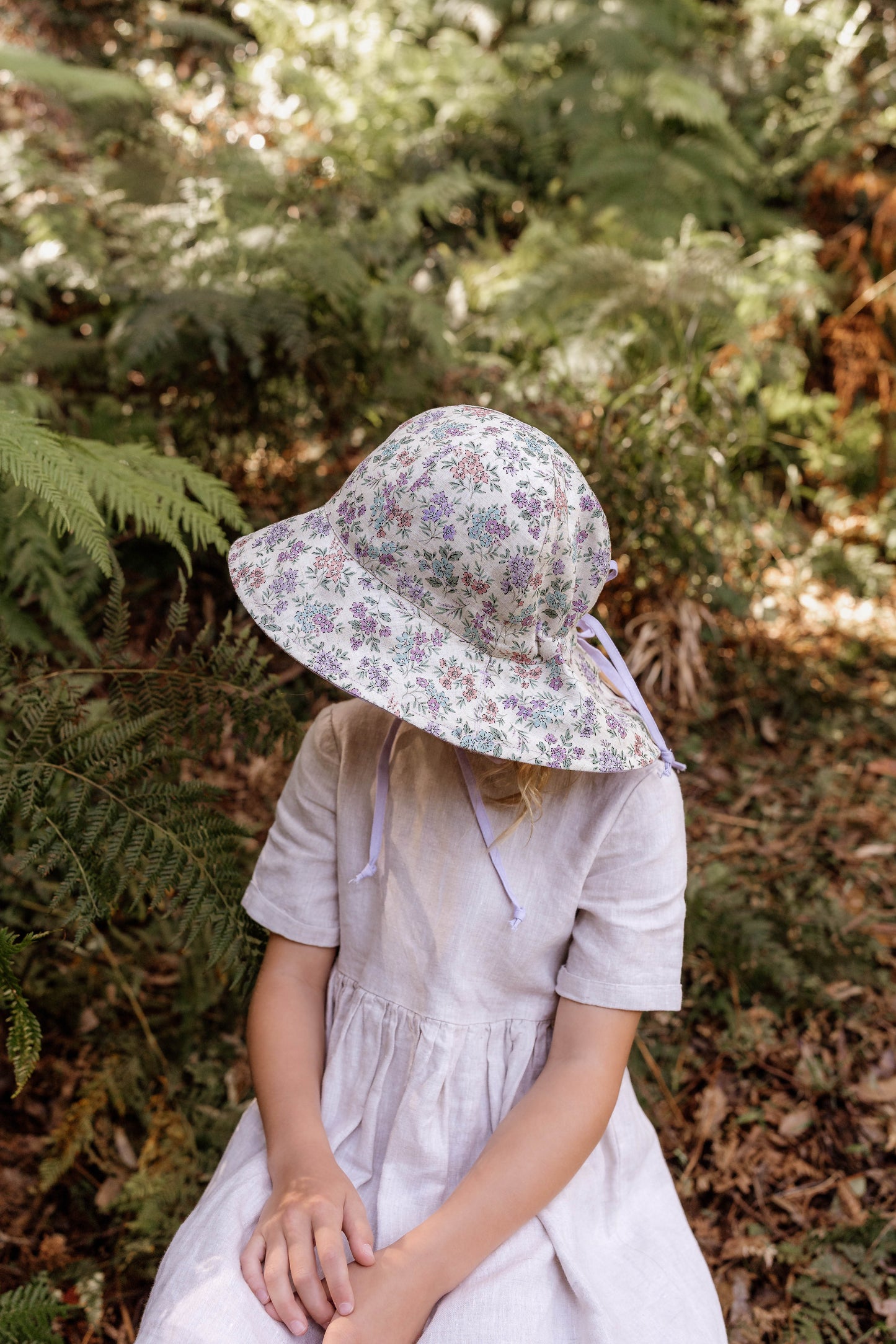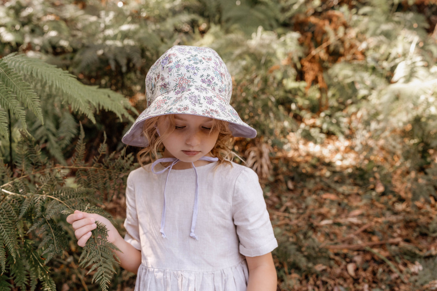 Florals forever! Laura’s vintage-style print is a soft, nostalgic dream filled with delicate garden hues – purples, pinks and muted greens – scattered on a gentle blush background. With its deep crown, wide brim and soft structure, the Wanderer Bucket Hat is as practical as it is pretty.