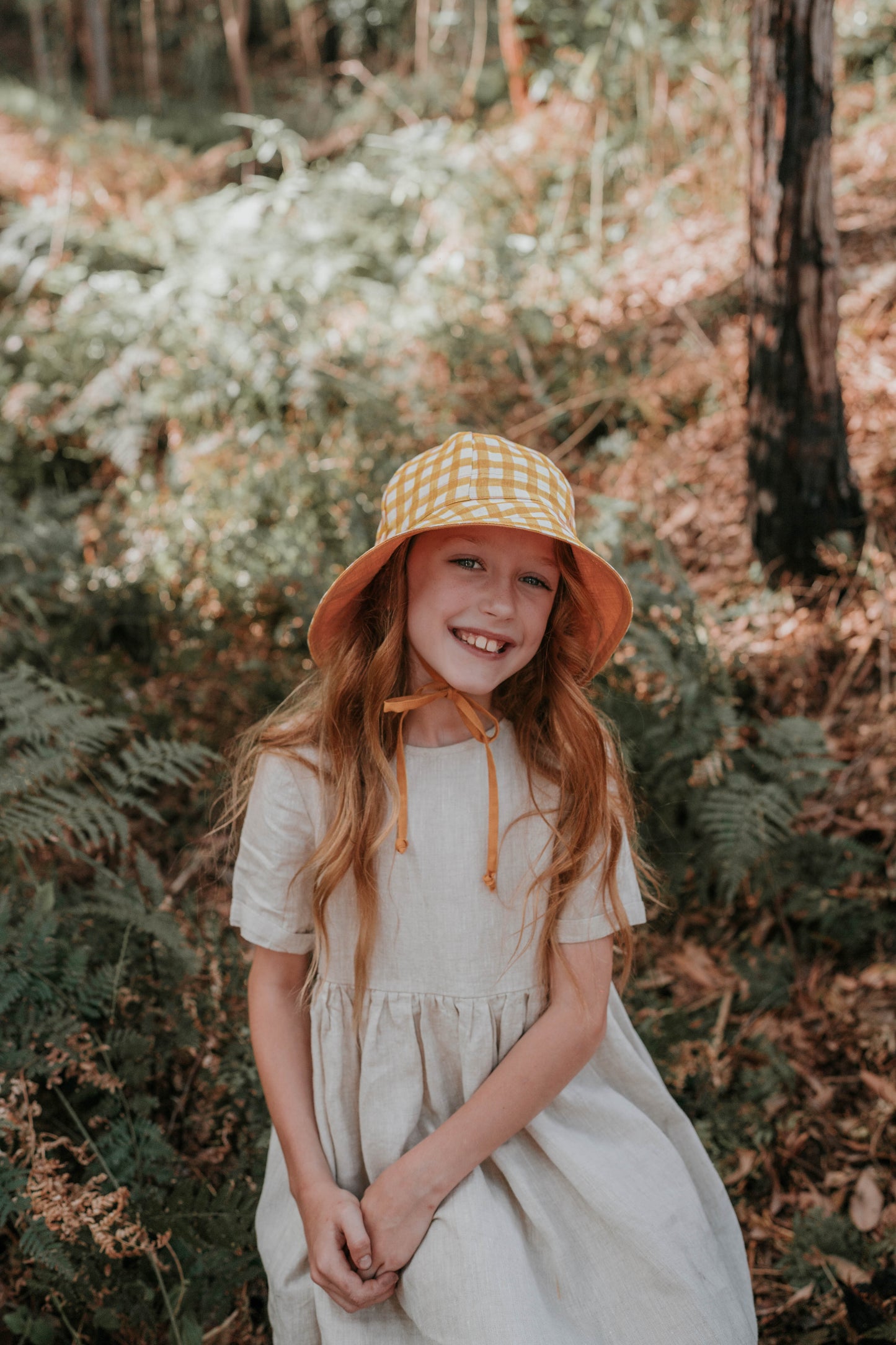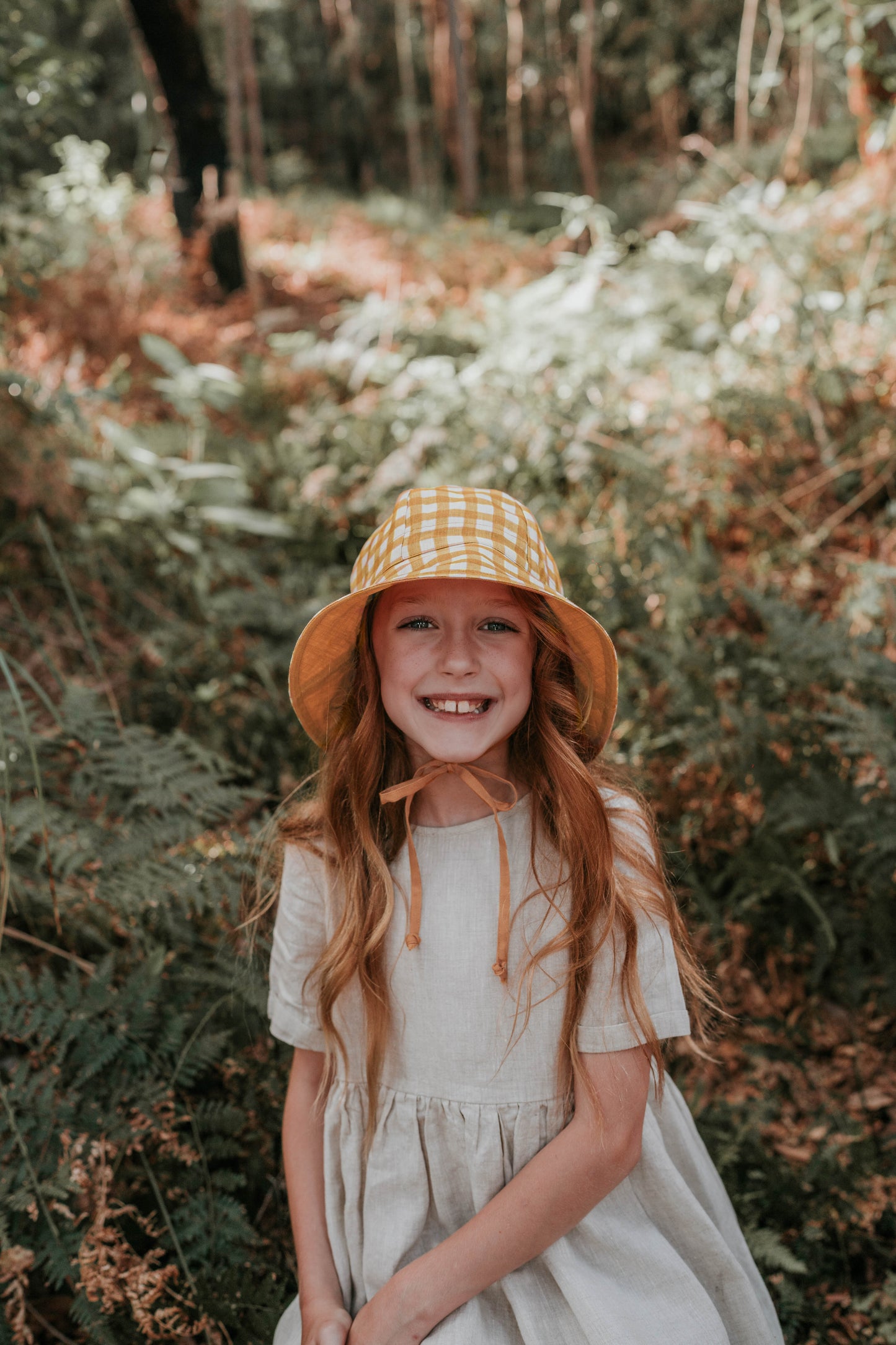 Shapely and stylish with a deep panelled crown, the bucket hats are light and cool on heads, making them hats kids don't even realise they're wearing! Made from 100% eco-friendly linen which can self-cool in summer and warm in winter, the Wanderer hat provides UPF50+ sun protection without overheating heads. The wide brims shield eyes and faces all year round, while the woven interfacing and thin cord edge in the brim gives a little more flexibility and shape without flopping in eyes.