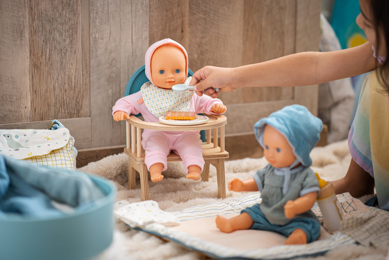 Pretend play with dolls provides the opportunity for little ones to practice social and empathic skills during play. Important fine motor and nurturing skills are developed as children role-play the world around them.