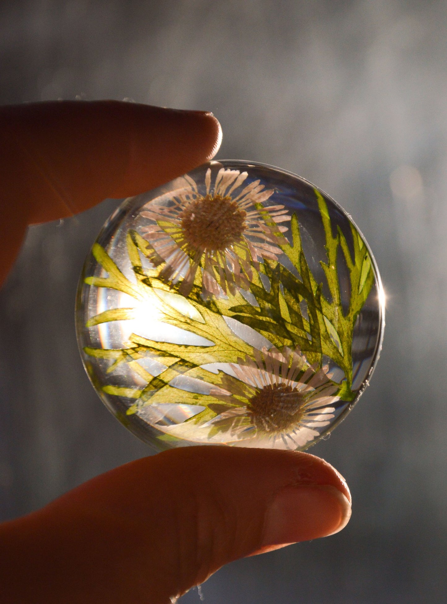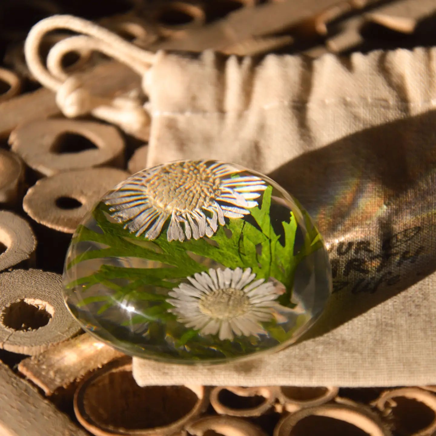Celebrate the beauty of nature with our Flower Dome, featuring a delicately preserved Showy Fleabane bloom. A charming addition to any play space or sensory setup, this piece invites little explorers to admire the intricate details of flowers up close.